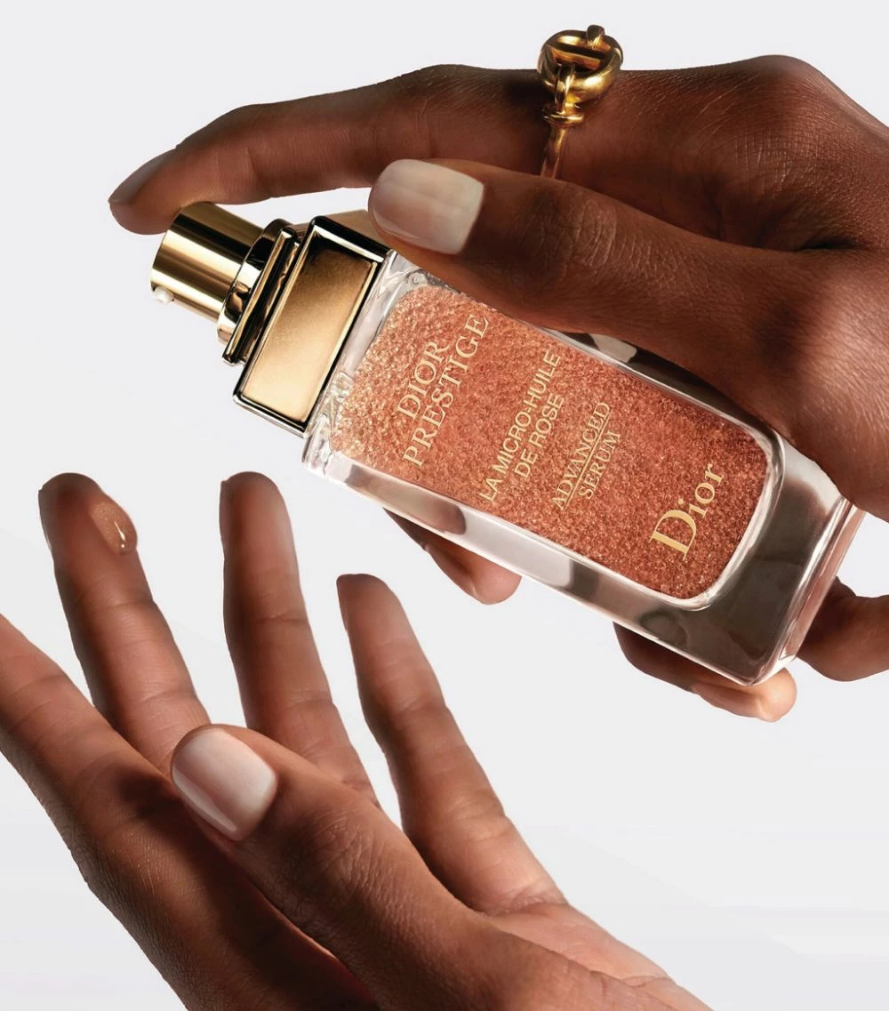 Introduce the DIOR Prestige La Micro-Huile de Rose Advanced Serum into your beauty ritual and you won’t regret it, as it’s been carefully formulated to leave skin feeling denser and stronger. Smooth it onto the visage and discover a transformative texture that’s entirely unique to the Maison, combining the richness of an oil, the penetrating power of a serum and the nourishment of micro-pearls suspended in concentrated essence of rose sap. The result? Firm, lifted, supple skin that’s full of vitality.